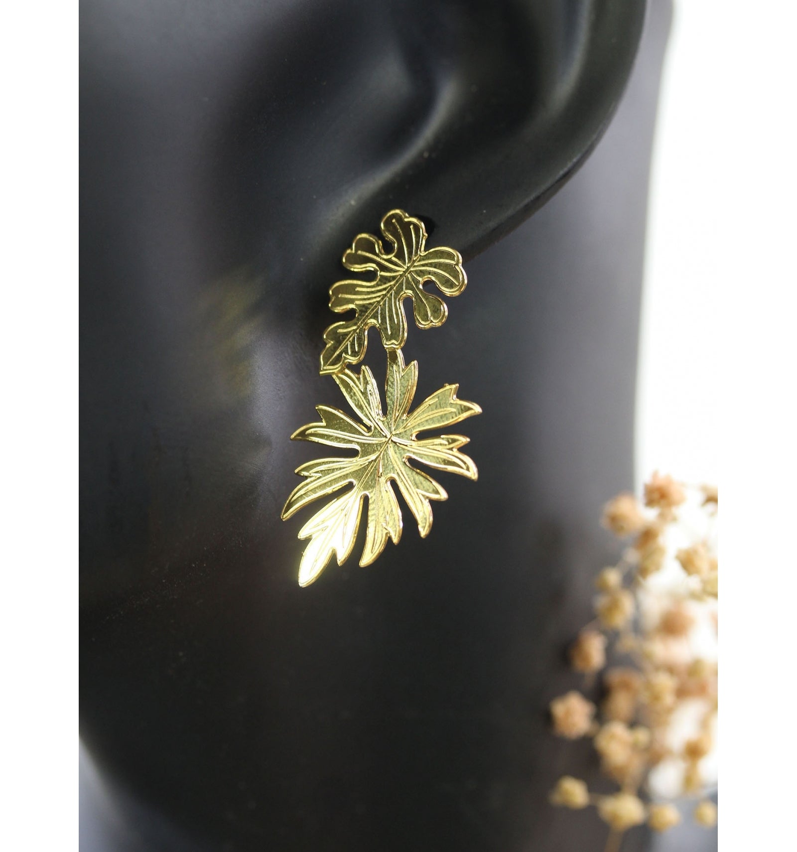 Boucles d’oreilles feuilles – Acier inoxydable doré